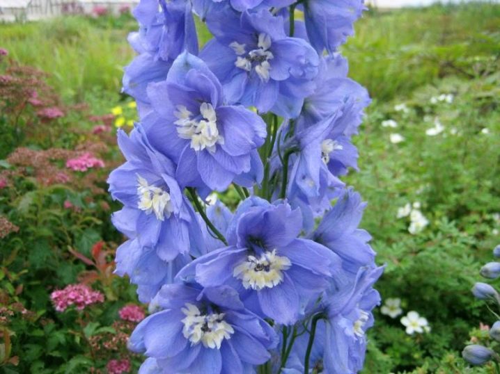 Дельфиниум Санни Скай предпочитает регулярный полив и подкормку в период активного роста. Для поддержания декоративности рекомендуется удалять отцветшие соцветия и подвязывать стебли, чтобы избежать их поломки под тяжестью цветов.
