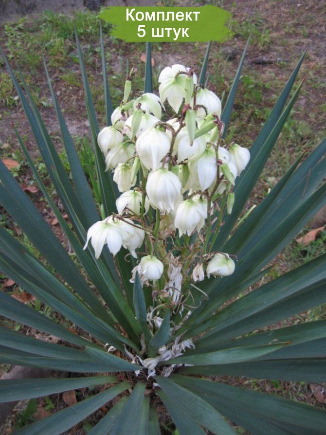 В набор входит 5 саженцев юкки Повислая, готовых к высадке в открытый грунт.