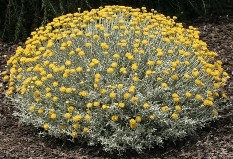 Сантолина "Санта" – это изысканное вечнозеленое растение, которое станет настоящим украшением вашего сада. Этот компактный кустарник с серебристо-зелеными листьями и яркими желтыми цветками привлекает внимание своей необычной текстурой и ароматом.